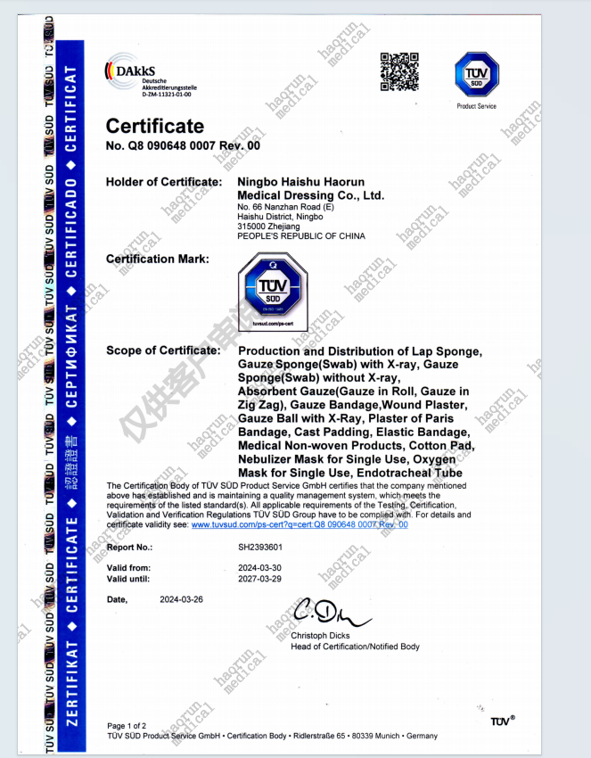 Nový výchozí bod pro globální expanzi: Prostřednictvím tohoto auditu TÜV plánuje Haorun Medical dále expandovat na špičkové trhy, jako je EU a Severní Amerika, a zároveň upevnit svou vedoucí pozici na stávajících trzích, jako je Latinská Amerika a jihovýchodní Asie. Produktová řada společnosti bude také sahat od základního spotřebního materiálu až po produkty s vysokou přidanou hodnotou."Kvalita není konec, ale cesta neustálého zlepšování." Společnost vždy dodržovala nejvyšší mezinárodní standardy a poskytovala bezpečné a spolehlivé zdravotnické produkty globálním zákazníkům.