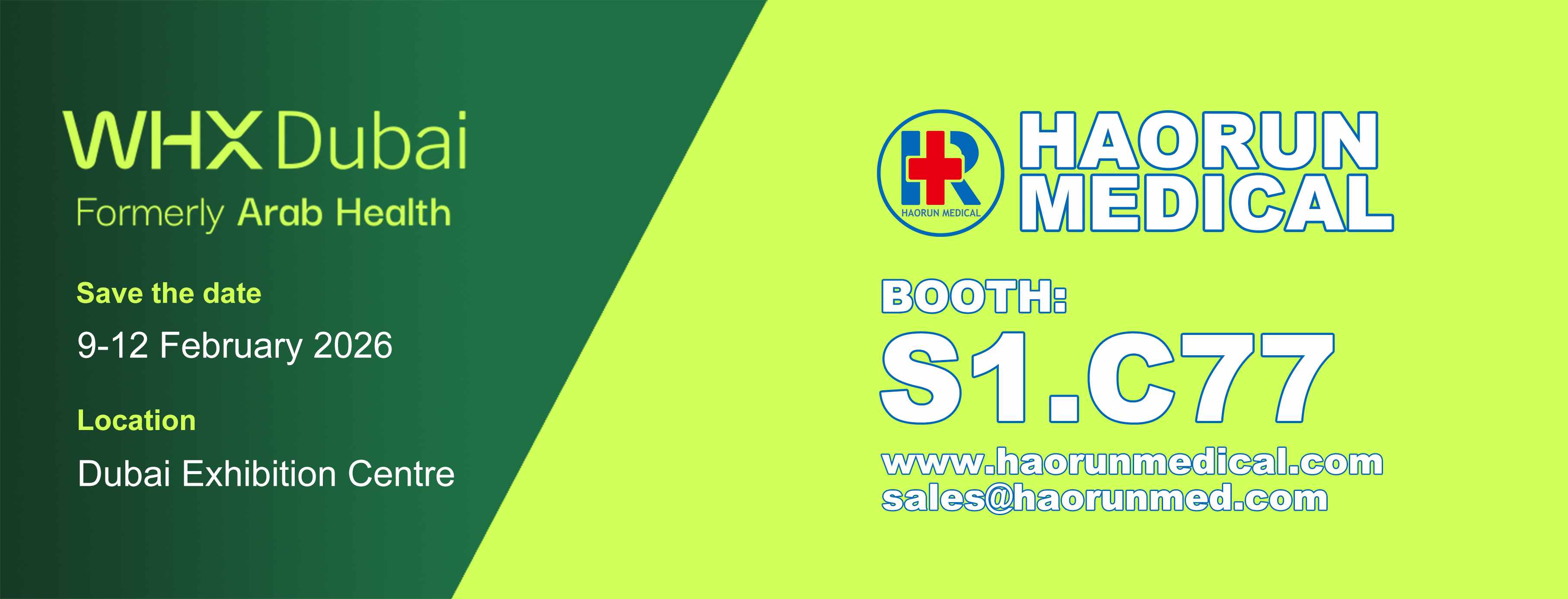 Od 9. do 12. února 2026 byla na dubajském výstavišti slavnostně zahájena velmi očekávaná výstava WHX Dubai (dříve Arab Health), která přitáhla celosvětovou pozornost zdravotnického průmyslu. Jako profesionální výrobce zdravotnického spotřebního materiálu Haorun Medical Dressing Co., Ltd předvedla své klíčové produkty na stánku S1.C77 a předvedla globálním kupujícím schopnosti Číny v oblasti výzkumu a vývoje a standardy kvality v sektoru zdravotnického spotřebního materiálu.